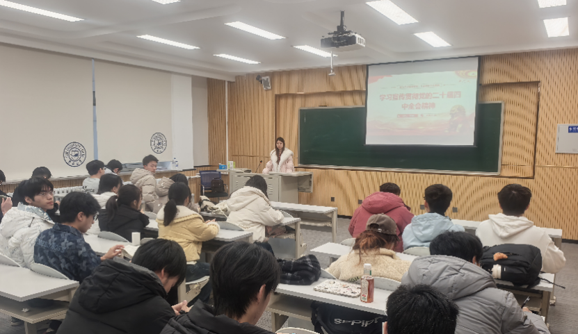 本次活动由团支书担任主讲,各支部围绕全会公报展开系统学习与深入研讨。团支书通过PPT展示、专题视频播放等形式,结合我国发展实际与当前国际形势,为同学们详细解读全会的重大意义与精神实质。其中,推进国家治理体系和治理能力现代化的总体目标、重大任务与战略部署,成为本次团课解读的重点内容。