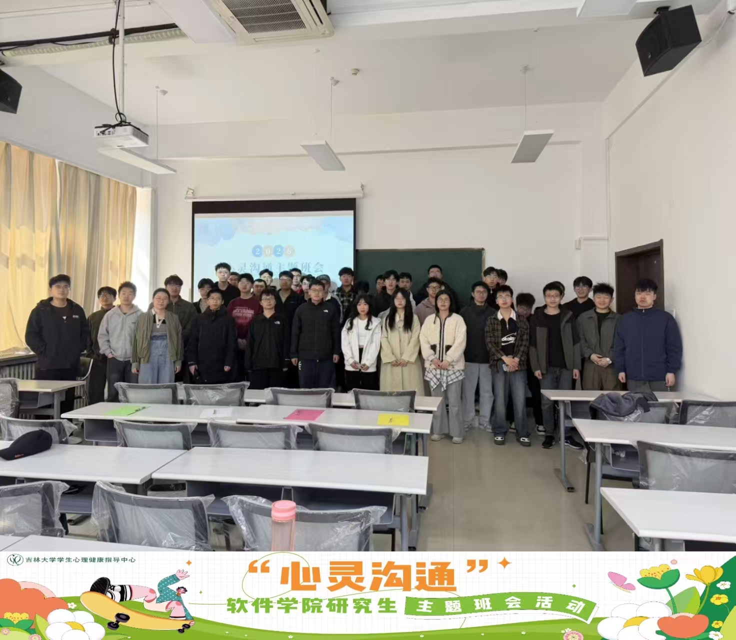 研究生朋辈心理辅导员罗晓晴主持,各班班长协助组织,2025级研究生参加。